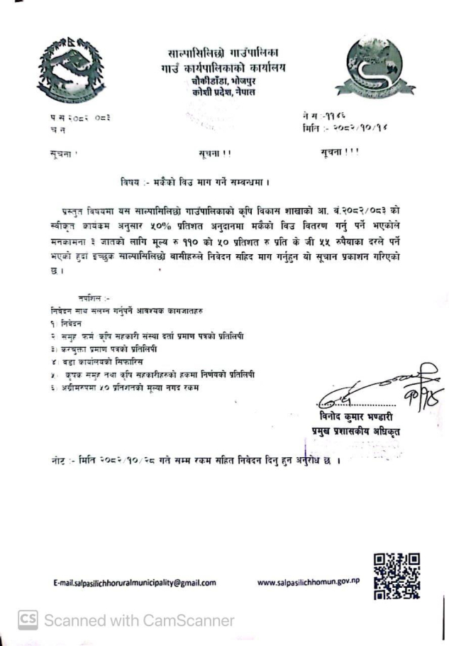 मकैको विउ माग गर्ने सम्बन्धमा ।