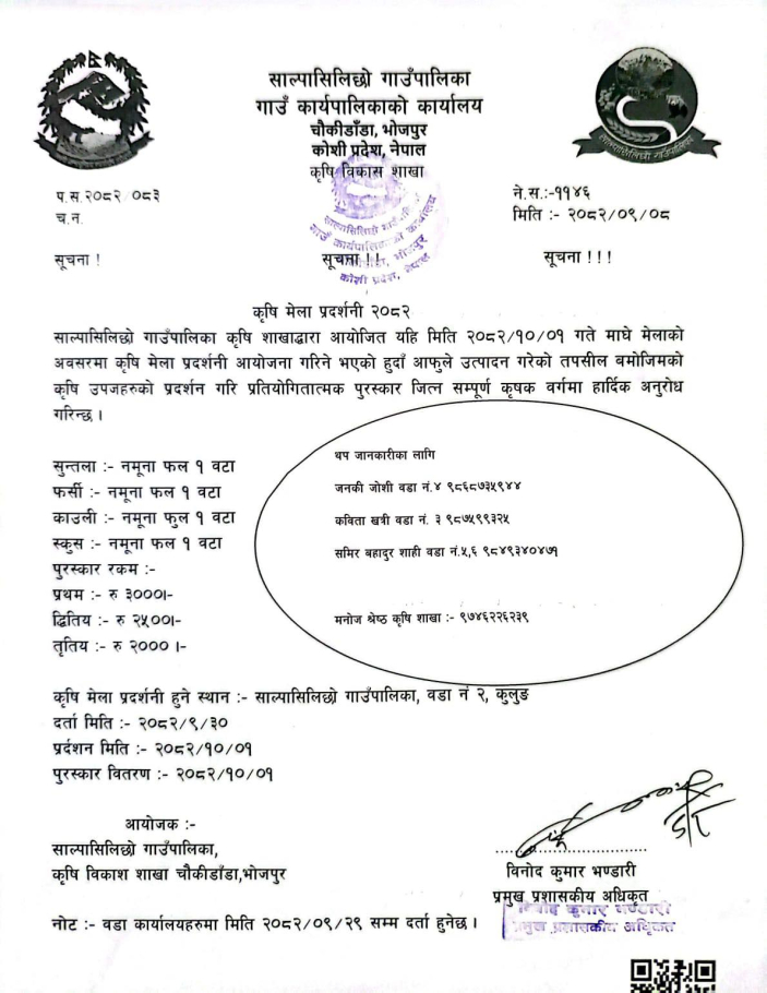कृषि मेला प्रदर्शनी २०८२ सम्बन्धी सूचना ।