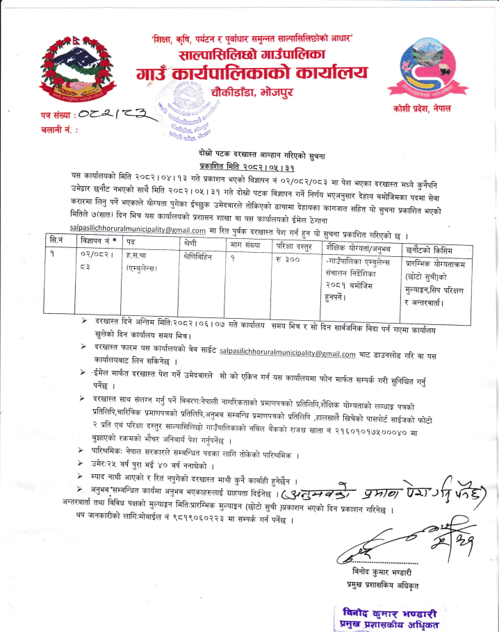 दोश्रो पटक दरखास्त आह्वान गरिएको सूचना प्रकाशित मिति २०८२ ०५ ३१