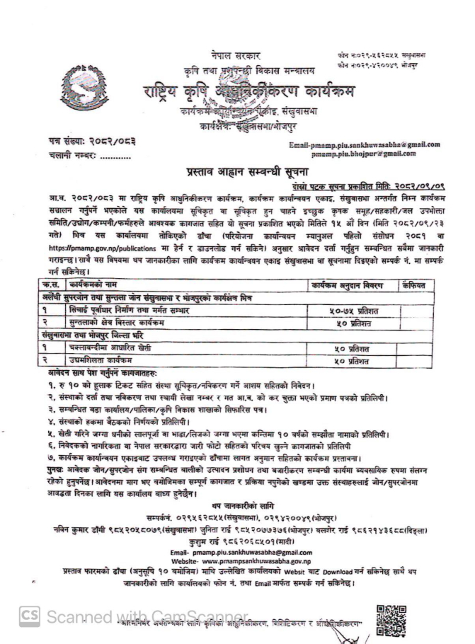 प्रस्ताव आह्वान सम्बन्धी सूचना ।